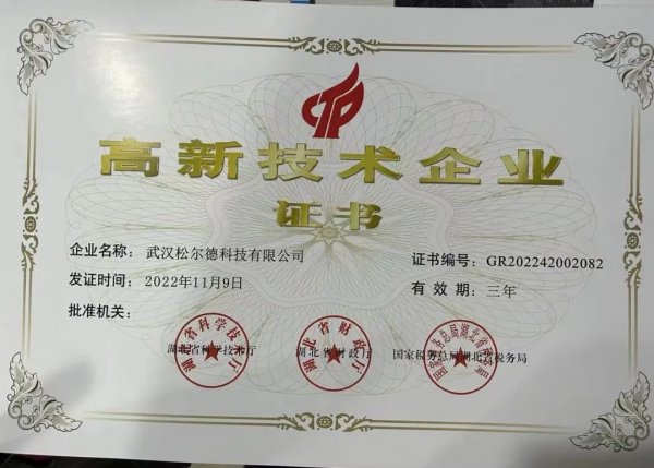松尔德科技荣获湖北省高新技术企业荣誉称号